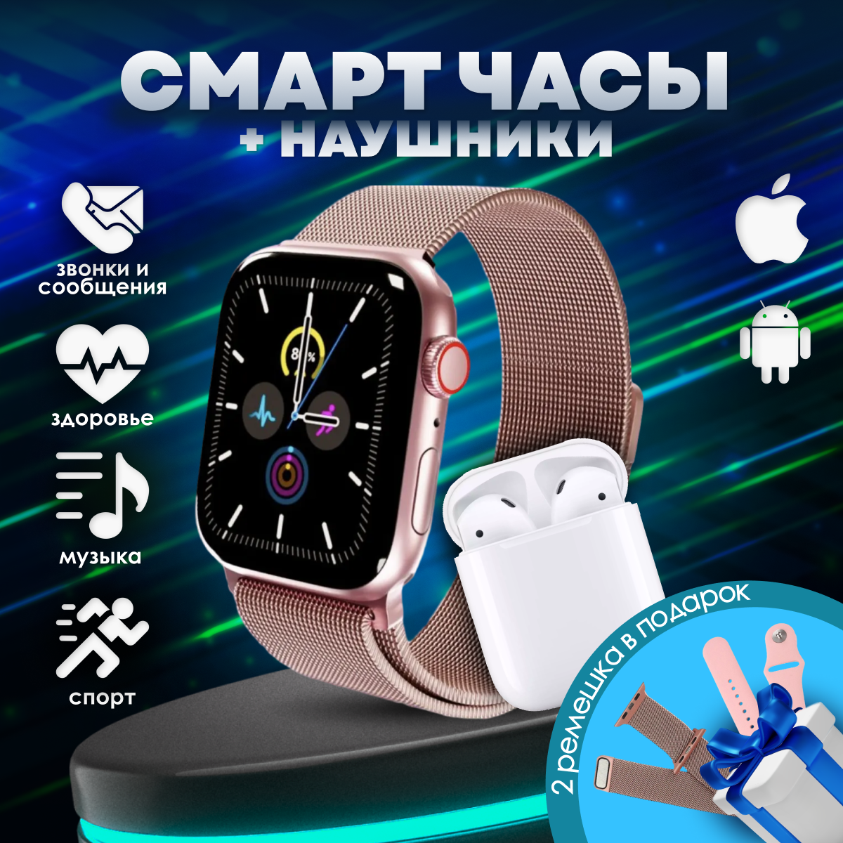 Smart watch rose | Умные часы розовые + вторые наушники интересное: