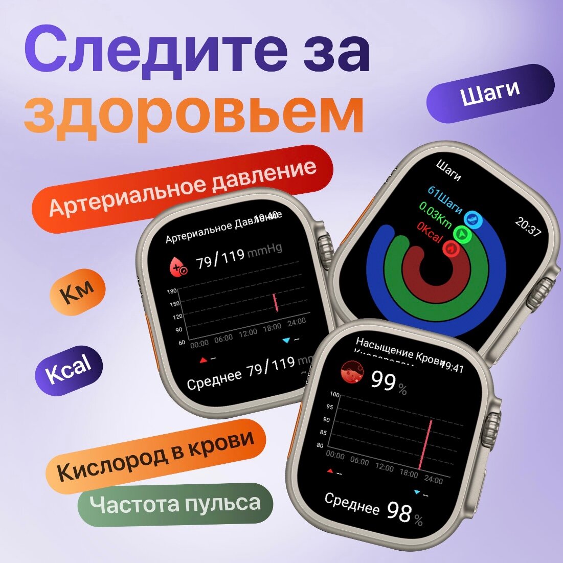 | Мониторинг | пульса, сна, температуры тела, тонометр, уровня кислорода в крови, физической активности |