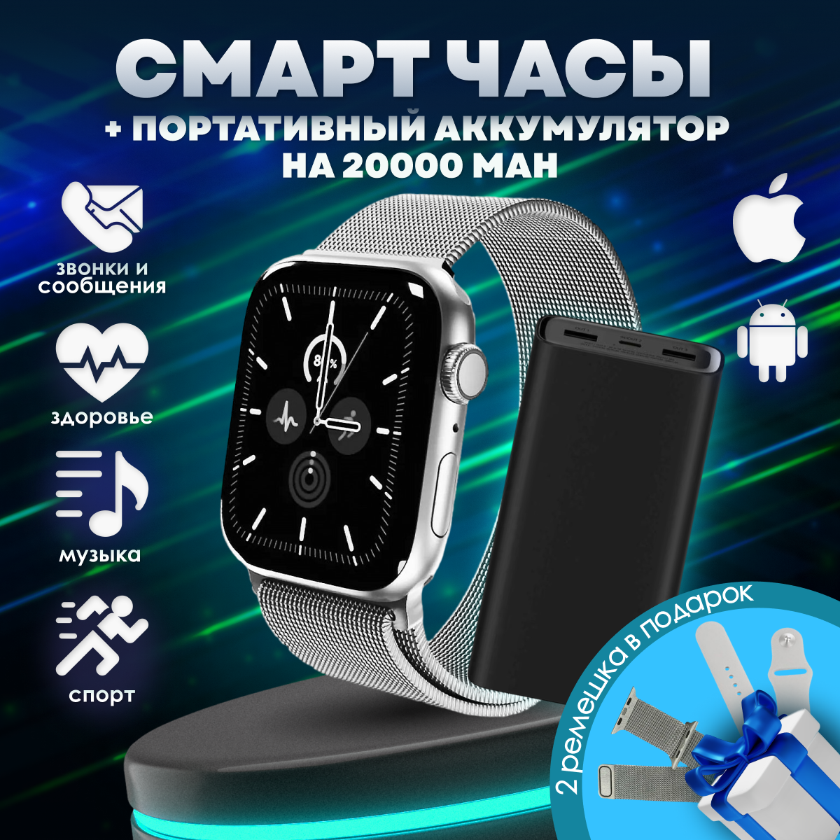 Smart watch silver | Умные часы серебряные + повербанк интересное: