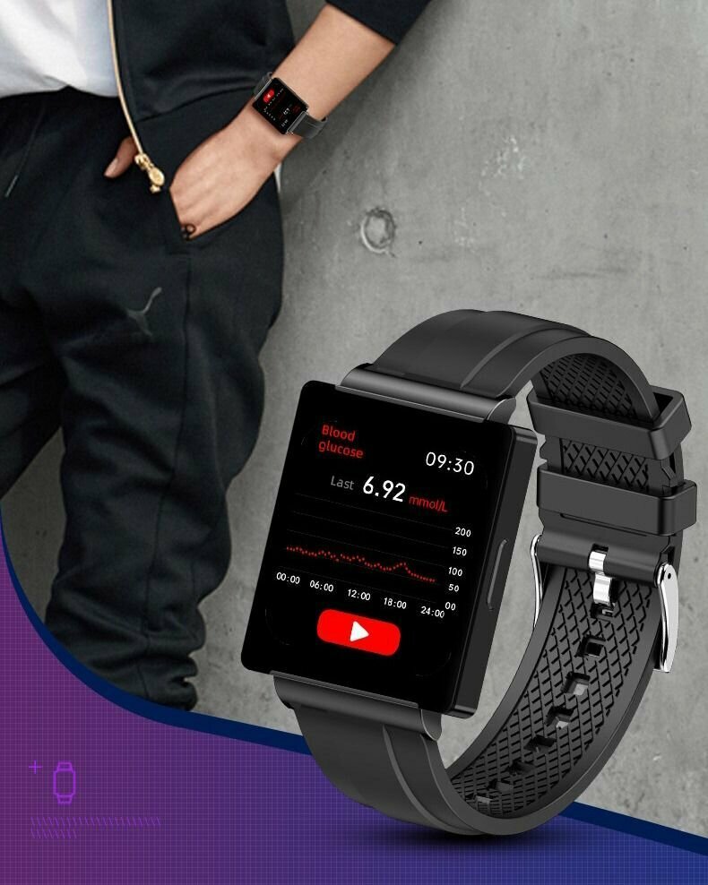 Умные часы KS01 с функцией измерения уровня сахара в крови, давления, ЭКГ. интересное: