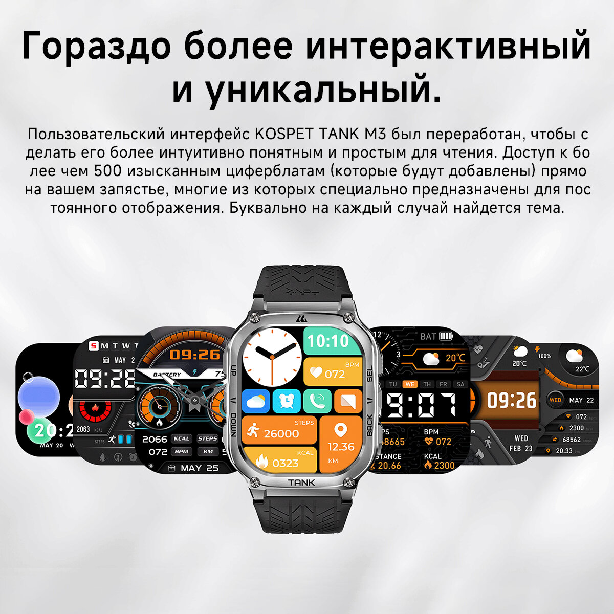 Умные часы KOSPET TANK M3, 1,96" AMOLED, водонепроницаемость 15 АТМ и IP69K, поддерживают плавание и дайвинг интересное: