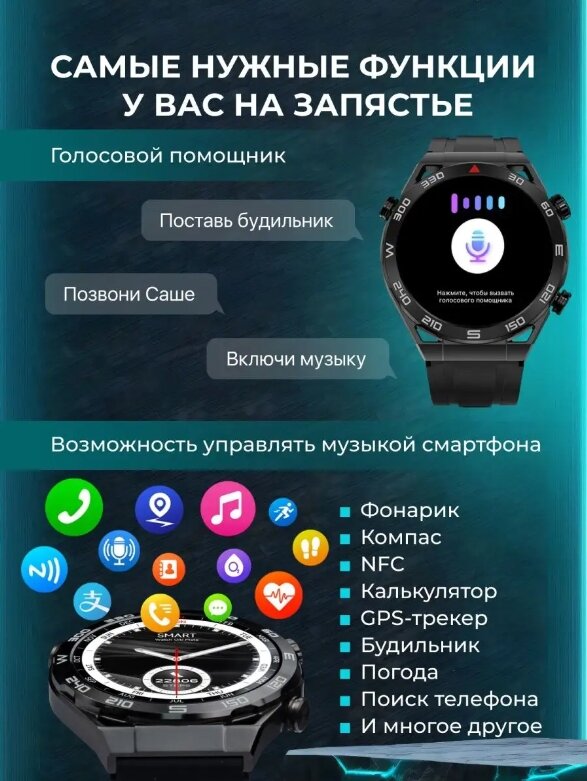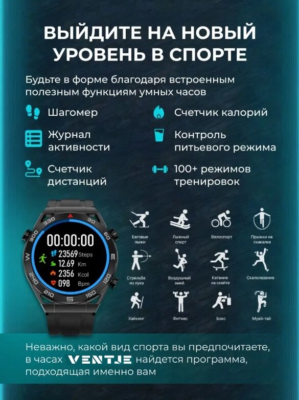 Смарт часы VENTJE Max Series, 46mm, цвет черный интересное: