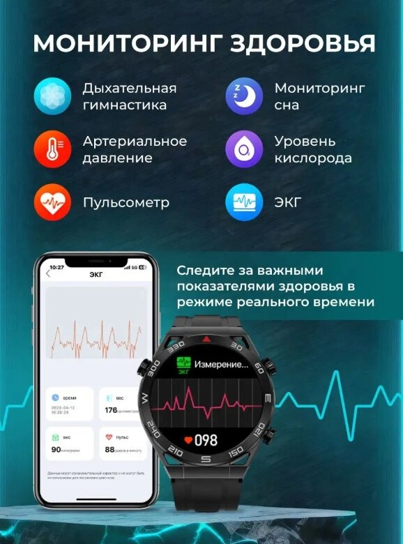 | Мониторинг | ЭКГ, пульса, сна, тонометр, уровня кислорода в крови, физической активности |