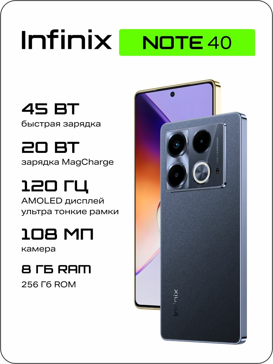 Смартфон Infinix Note 40 8/256 ГБ Global для РФ, Dual nano SIM, Obsidian Black
