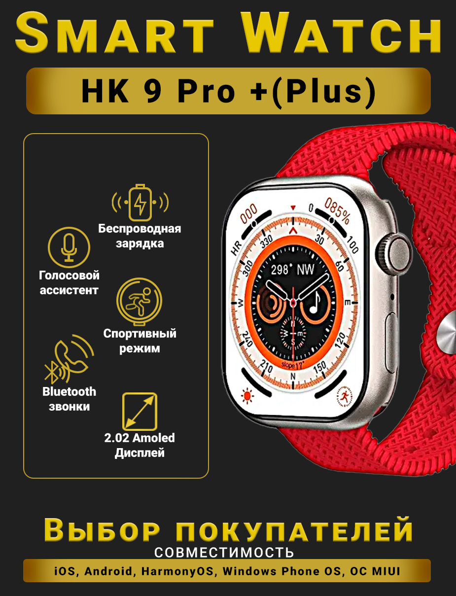 Купить Смарт часы HK9 PRO + Умные часы PREMIUM Series Smart Watch AMOLED, iOS, Android, СhatGPT, Bluetooth Звонки, 2 ремешка, Красный