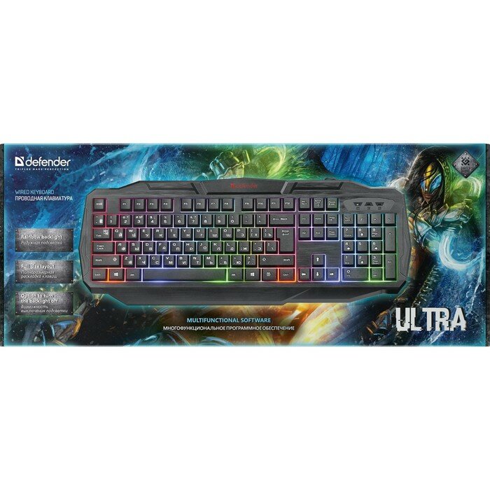 Клавиатура Defender проводная Ultra HB-330L, USB, 104 клавиши, с подсветкой, черная 45330
