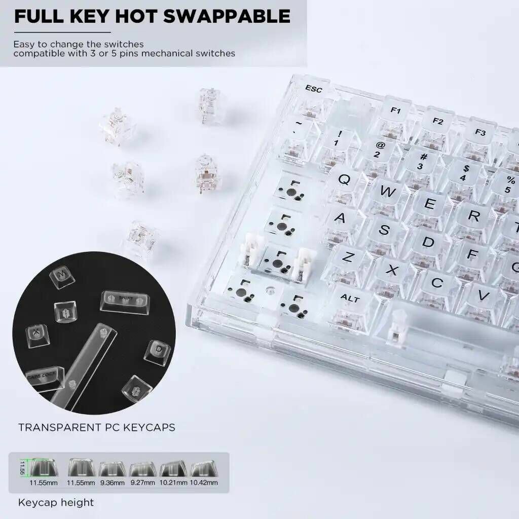 Беспроводная механическая клавиатура YUNZII X75 Pro Kailh Jellyfish Switch, Hot-Swap (английская раскладка), цвет прозрачный белый интересное: