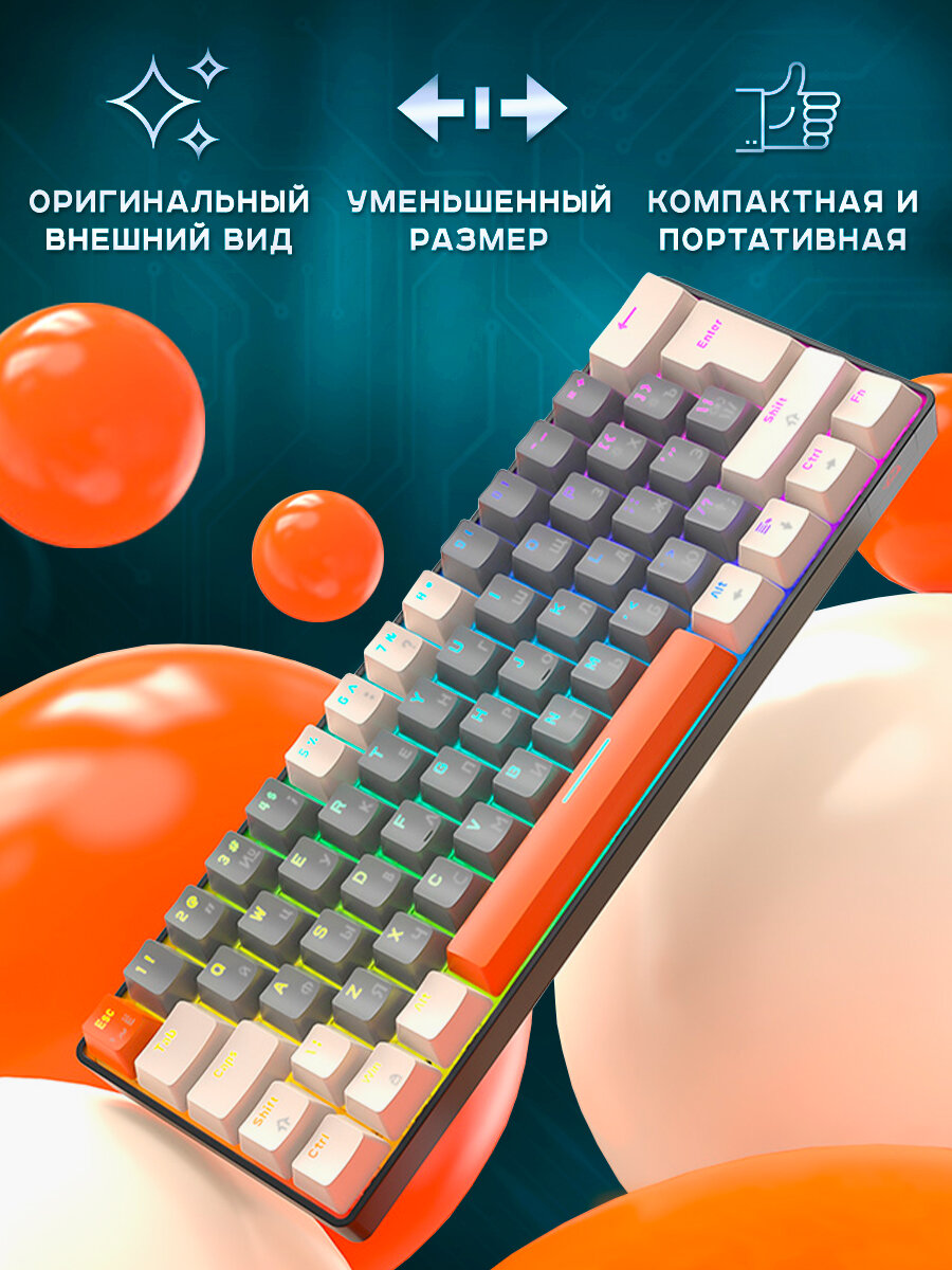 Игровая механическая клавиатура 60%, проводная, LED подсветка радужная, рус / англ раскладка интересное: