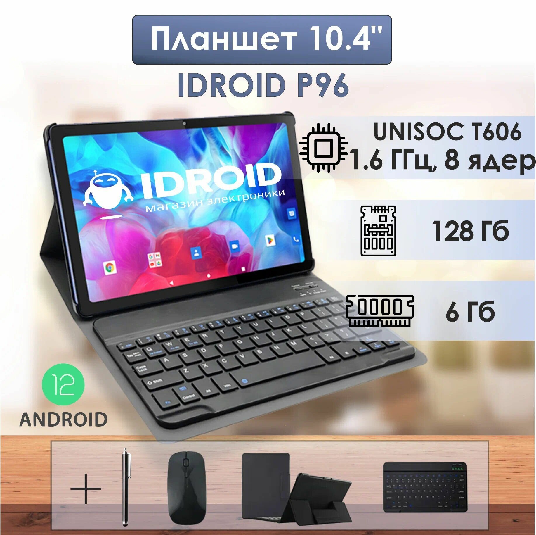 10.4 планшет с разрешением экрана 2К, bluetooth клавиатурой и стилусом, "iDROID P96" 6GB+128GB, android 12.0, 8 ядерный процессор 1.6 ГГц, серый интересное: