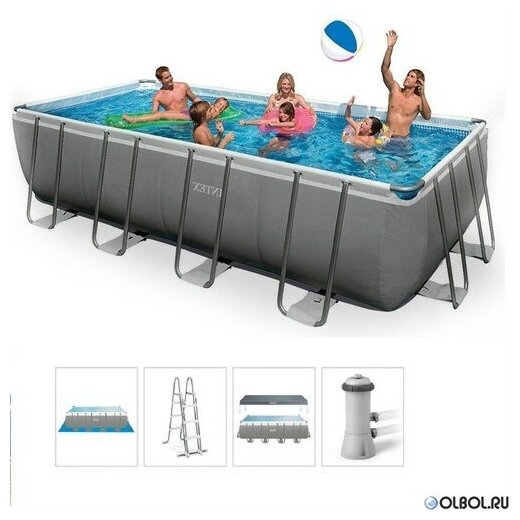 Каркасный бассейн Intex Rectangular Prism Frame Pool, 488х244х107 см + фильтр-насос + аксессуары, 26792
