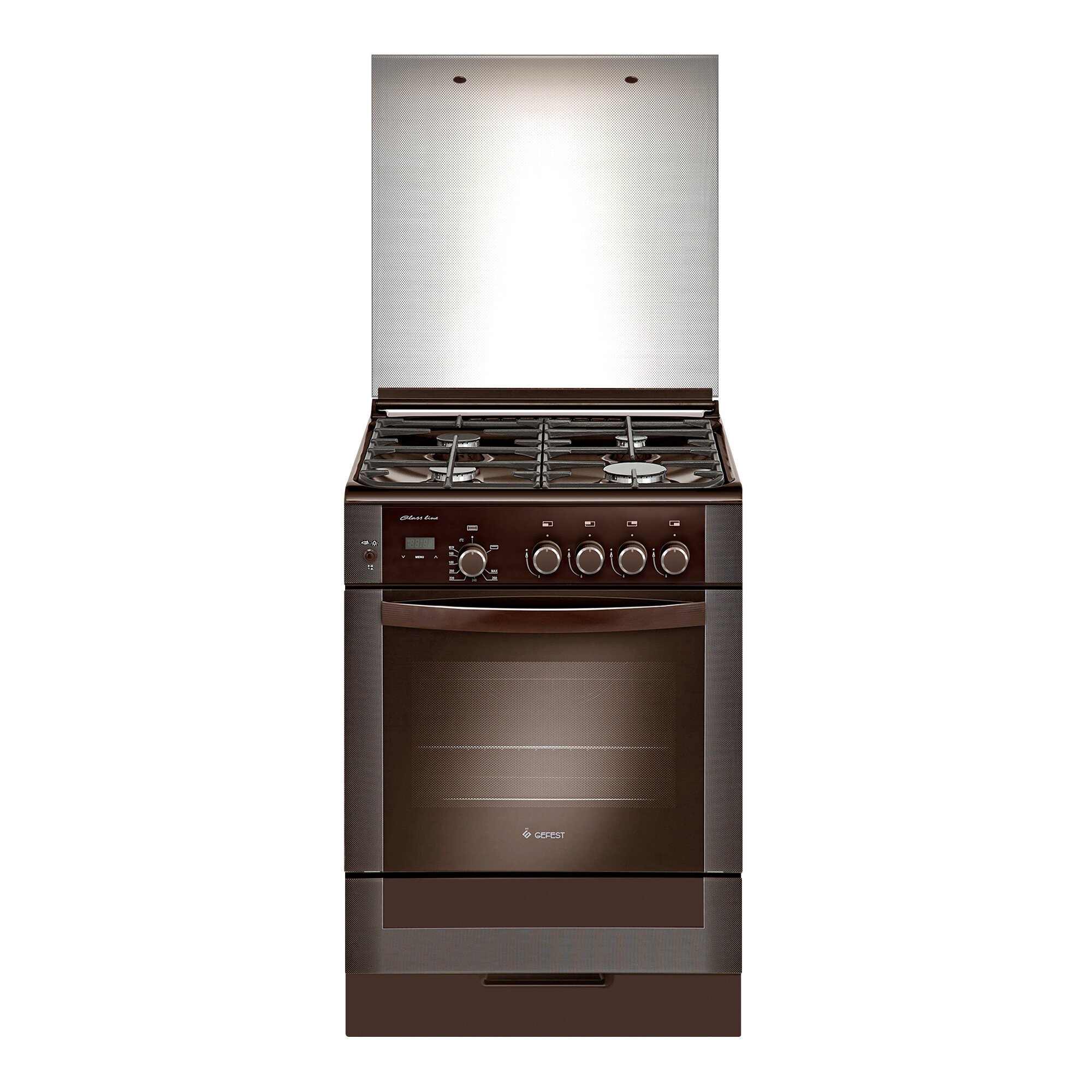 Плита газовая GEFEST 6300-03 0047, стеклянная крышка, коричневый