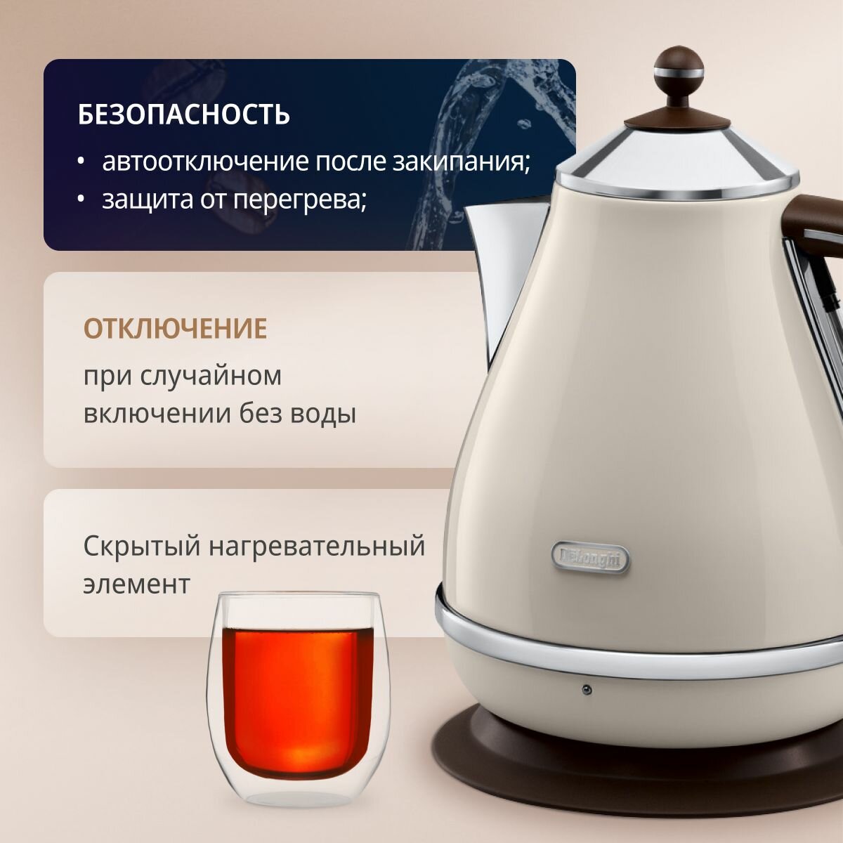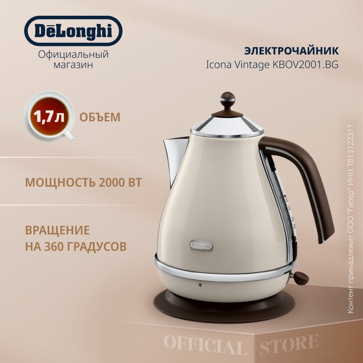 DeLonghi Чайник DeLonghi Icona Vintage KBOV2001.BG, электрический, бежевый (2000Вт, 1.7л) (ret)