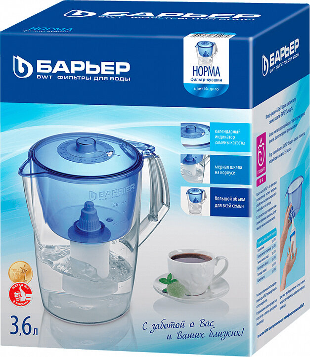 БАРЬЕР Норма индиго, фильтр-кувшин для очистки воды, 3,6 л, календарный индикатор
