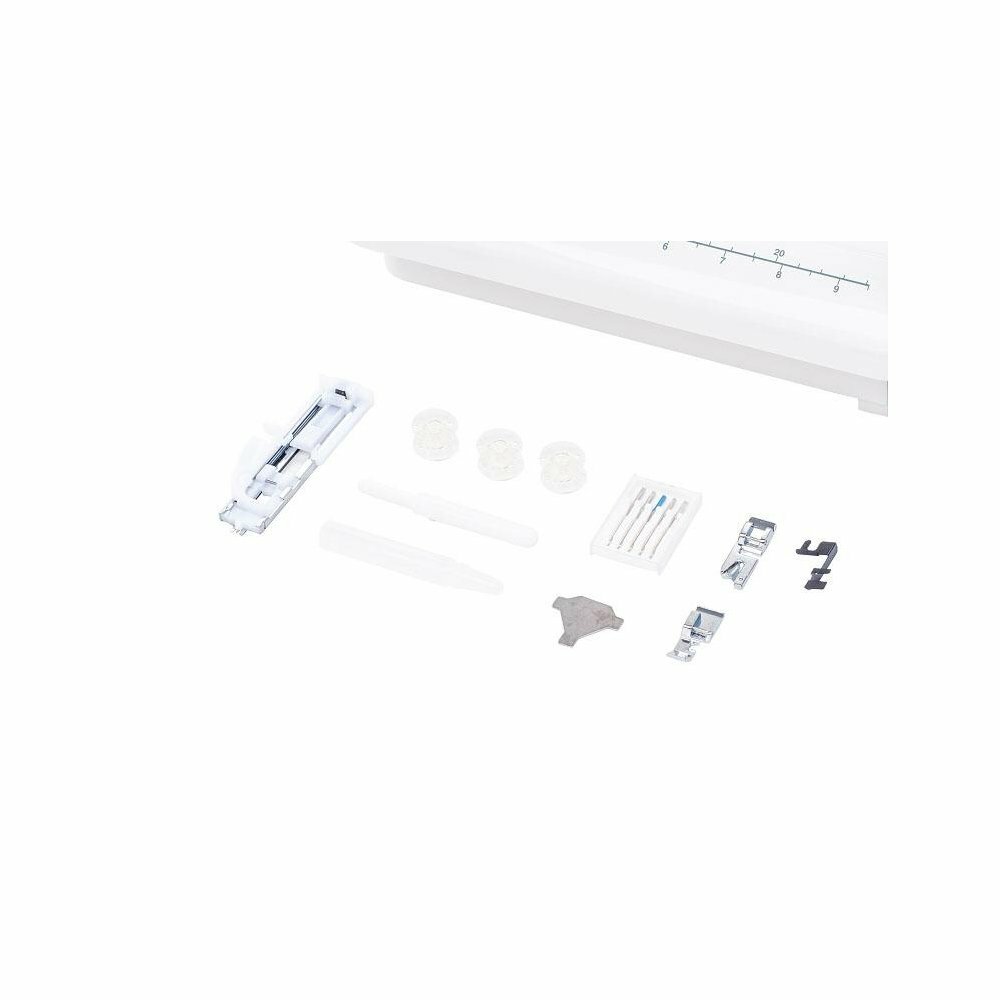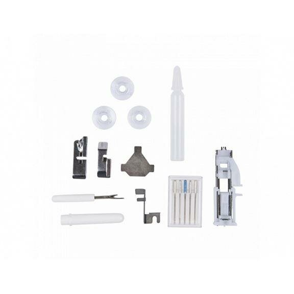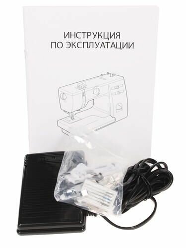 В комплектации вспарыватель, 4 шпульки, 3 иглы универсальных, ножная педаль. Строчки ровные Хорошая фирма, следственно качествество механизма. Небольшая стоимость |