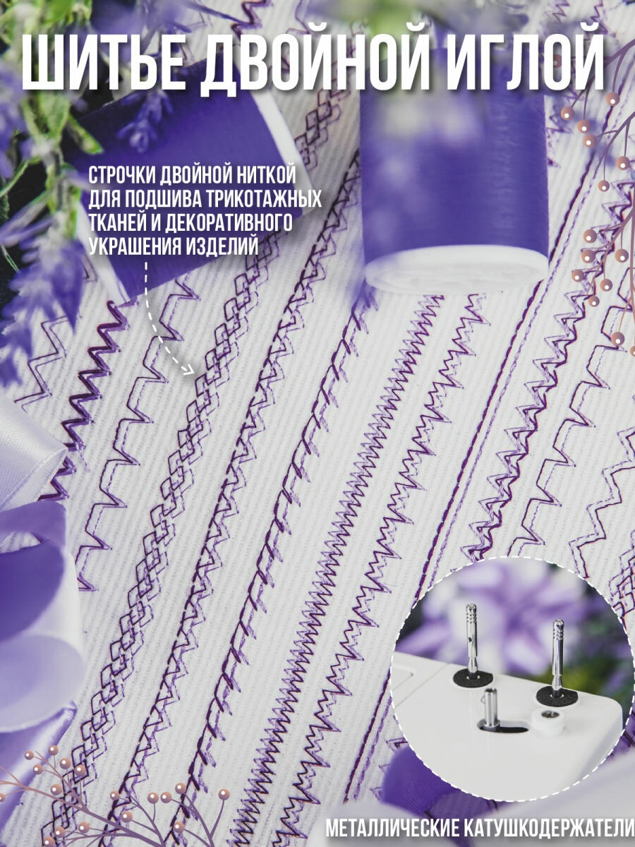 | Плюсы: | Набор строчек <br>Металлическая станина <br>Рукавная платформа <br>Нитевдеватель <br>Выметывание петли для пуговицы <br>Всеядность <br>Стоимость <br>Жесткий чехол |