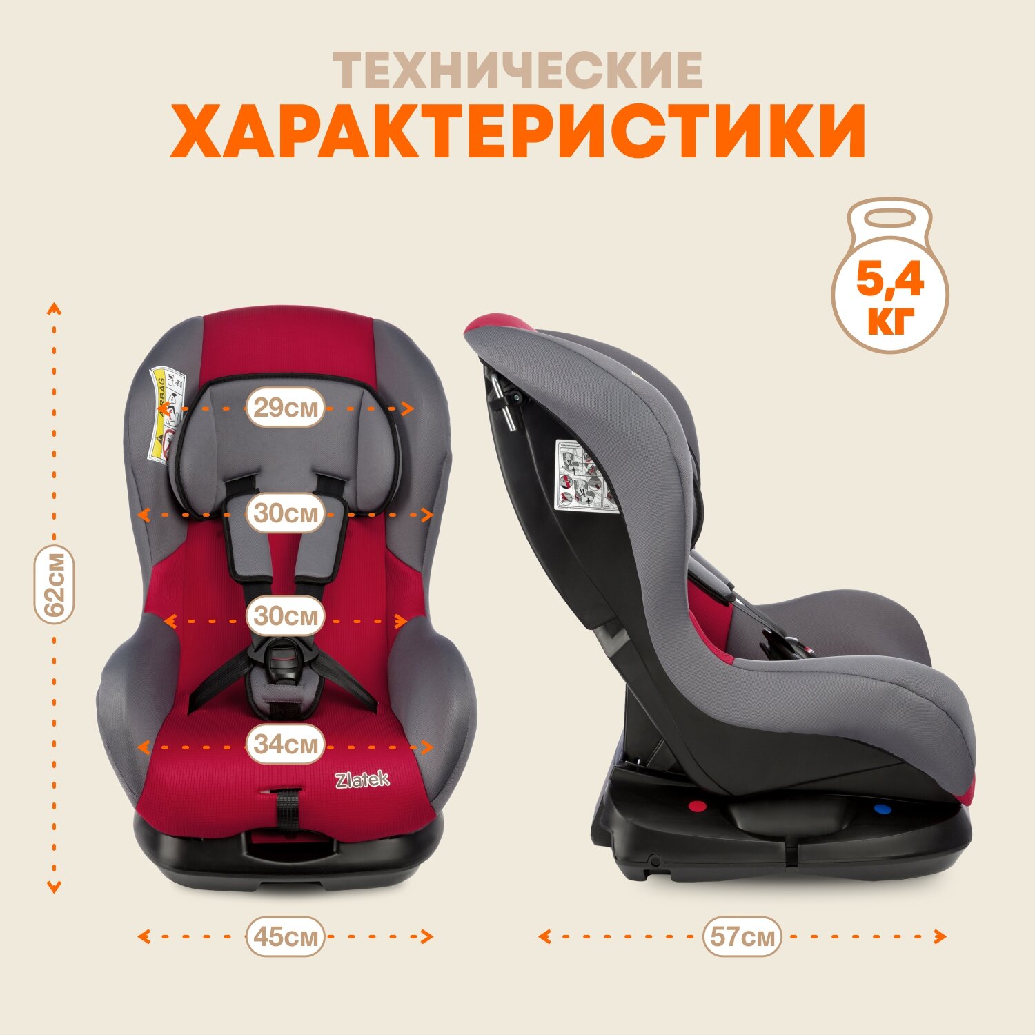 Автокресло ZLATEK Galleon красный, гр. 0+/I, 0-18 кг, 0-4 лет 0-18 кг