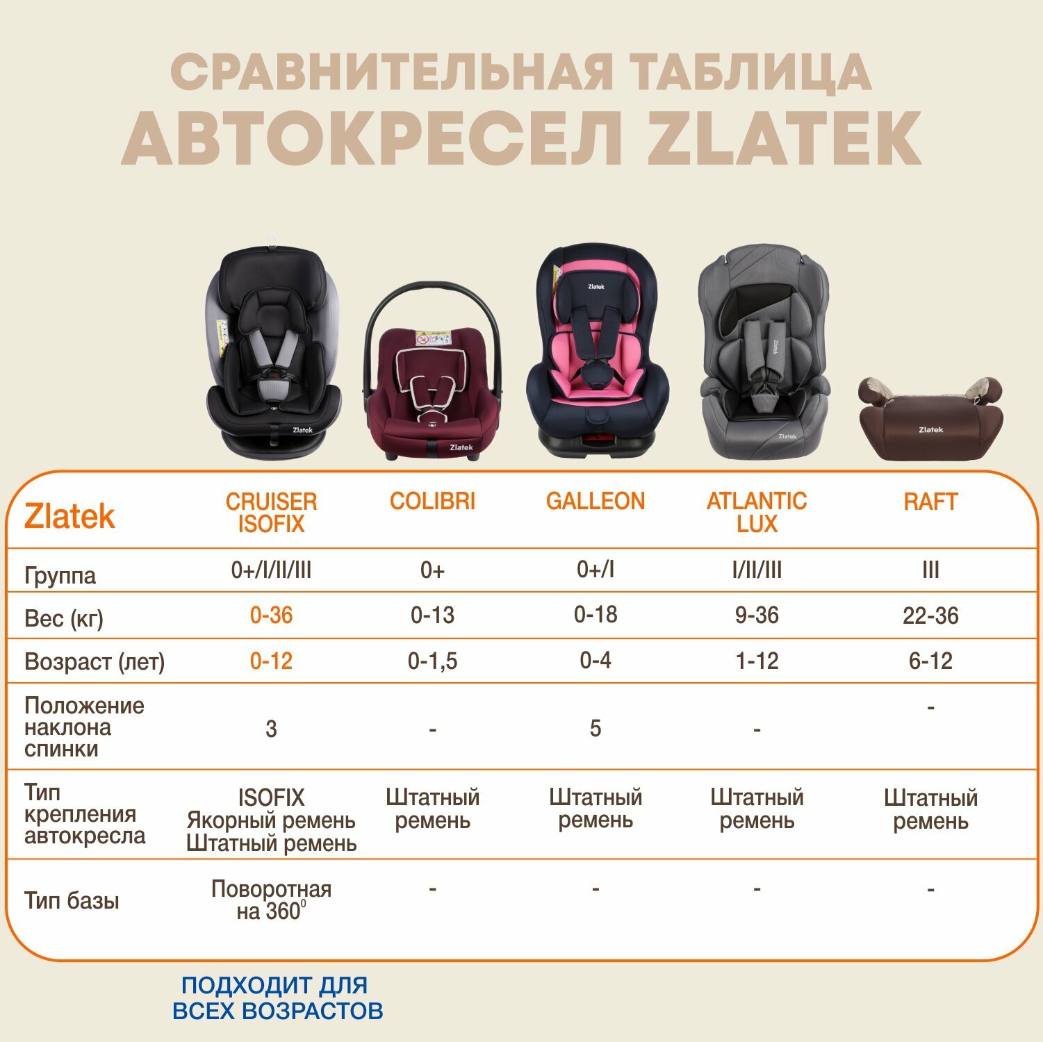 Автокресло ZLATEK "Galleon" муссон, гр. 0+/1, 0-18 кг, 0-4 лет KRES3734