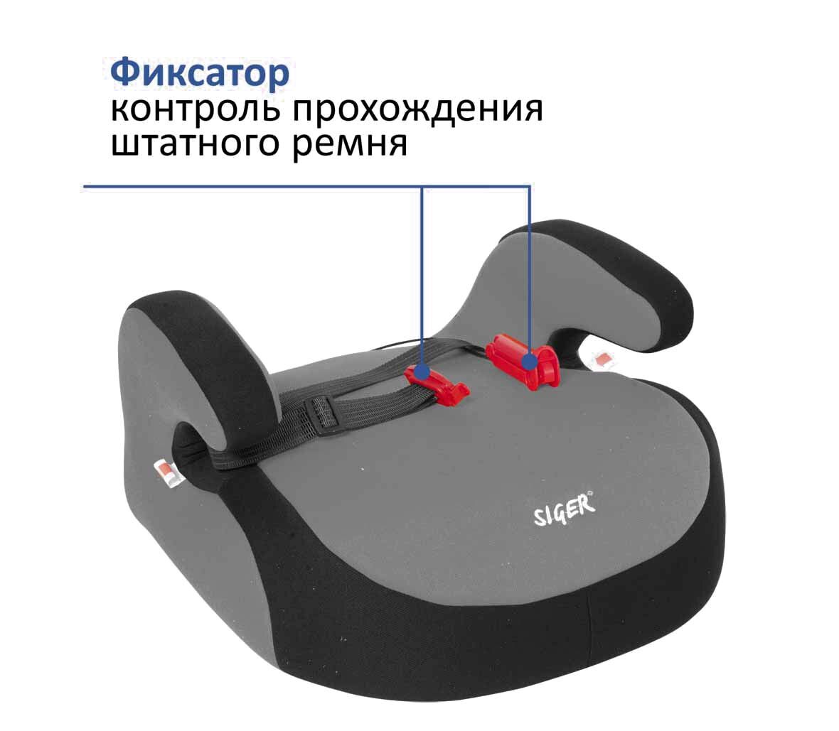 Автокресло подушка 15-36 кг (6-12 лет) Siger с фиксатором ремня серое