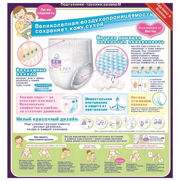 СохранитьMerries Набор подгузников-трусиков Merries M (6-10 кг) 58 шт 3 уп интересное: