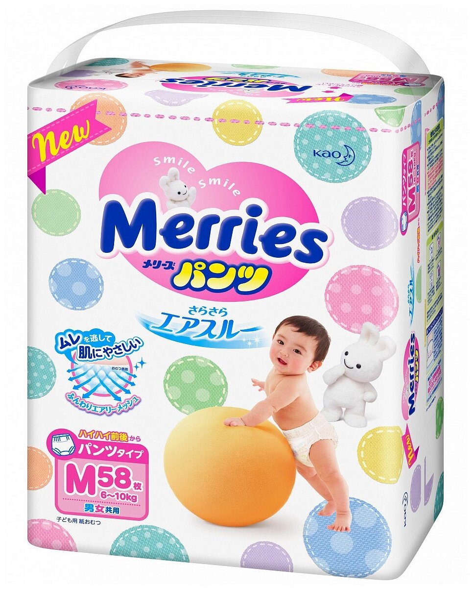 Подгузники-трусики Merries M (6-10 кг), 58 штук