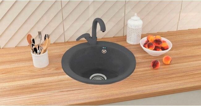 Мойка кухонная Ulgran из искусственного мрамора круглая U-405, цвет: графит, база: 47х47 см, арт. U-405-342