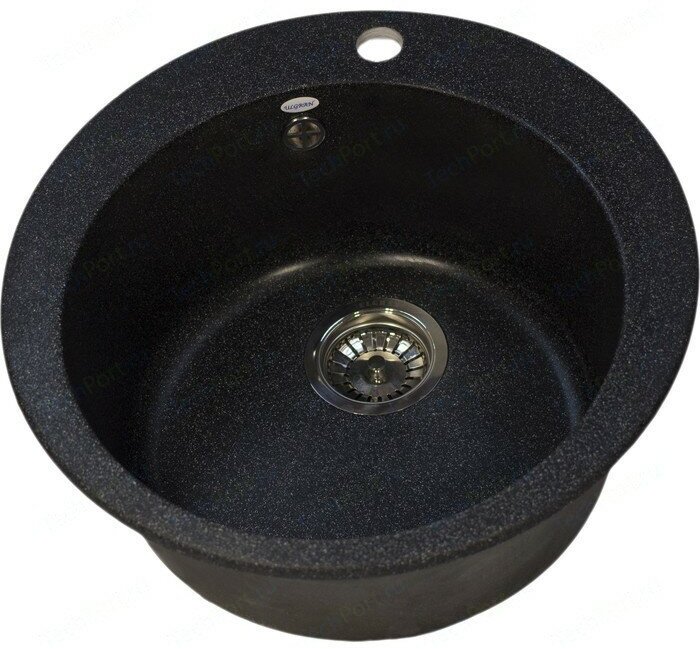Мойка кухонная Ulgran из искусственного мрамора круглая U-405, цвет: ультра-черный, база: 47х47 см, арт. U-405-344