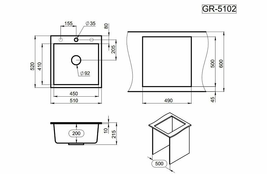 Кухонная мойка Granula GR-5102 (510*520) Базальт