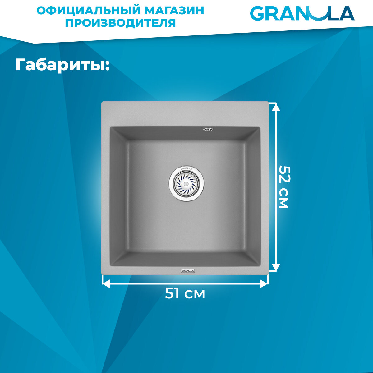 мойка квадратная GRANULA 510х520х190мм арктик кварц