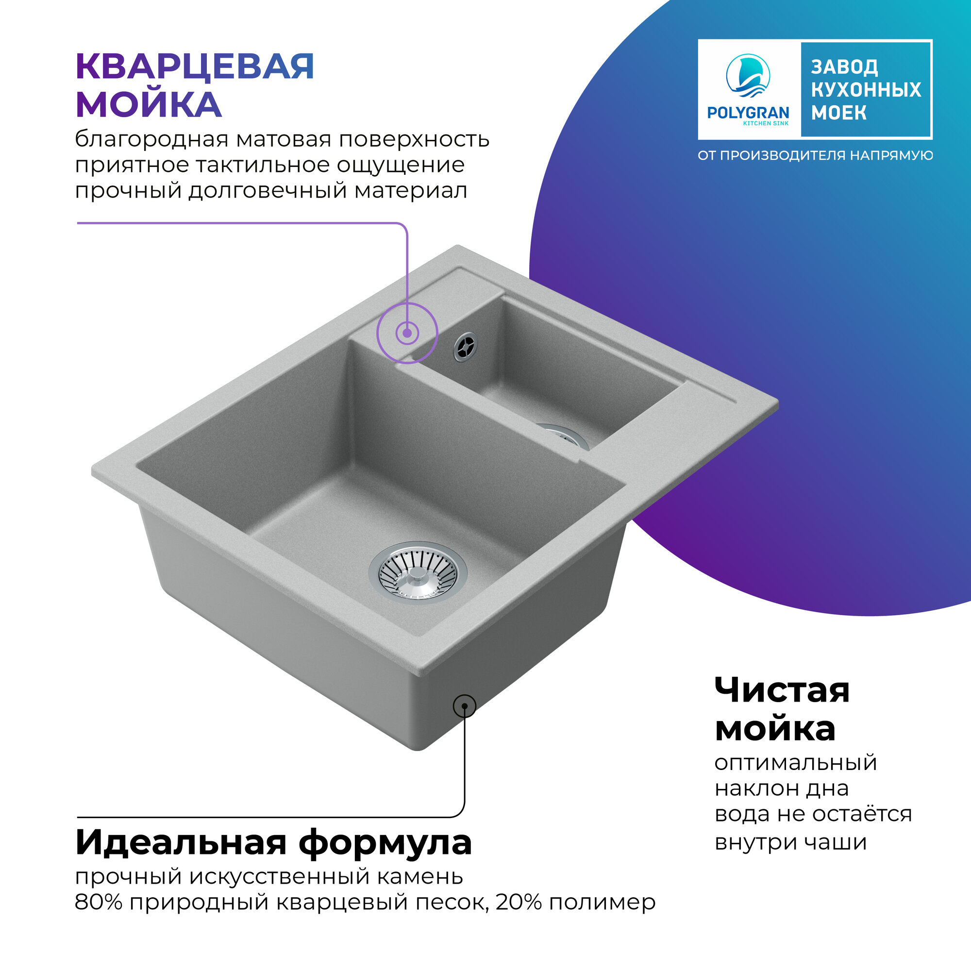 СохранитьМойка для кухни TOLERO Classic R-109 каменная двухсекционная Кварц (Платина) интересное: