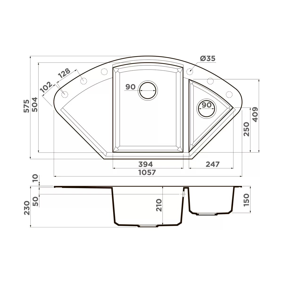 Мойка кухонная угловая Omoikiri Sakaime 105C-EV Эверест (4993210)