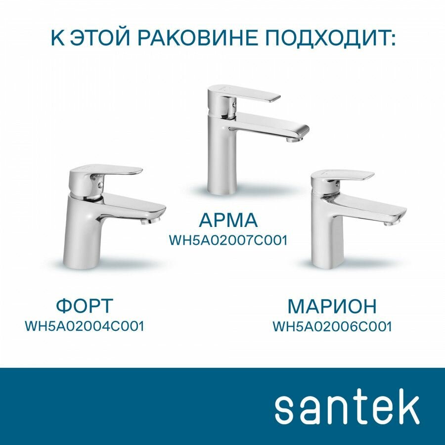 Раковина-умывальник Santek "Коралл" 83 см, левое крыло, отверстие под смеситель, мебельная