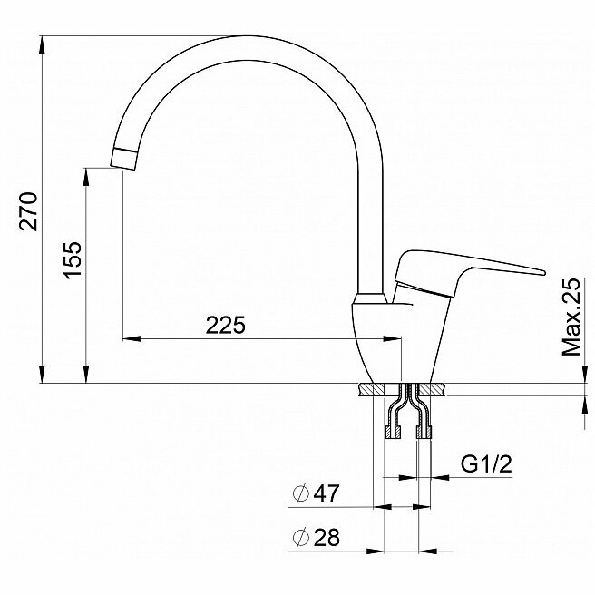 Смеситель для кухни GRANULA Базальт 1024 А 01