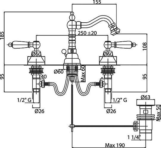 Cezares Смеситель для биде на три отверстия с донным клапаном CEZARES DIAMOND-BBS2-02-Sw