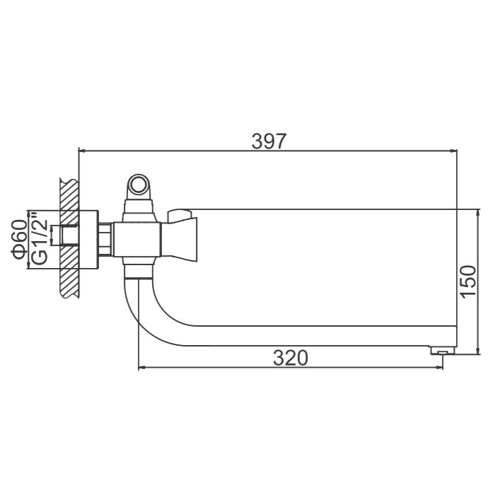 2587 Смеситель Ванна LEDEME ср. нос 1/2 м/к дивертор в корпусе