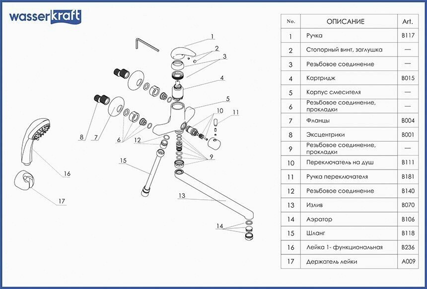 Само собой разумеется, не стоит забывать о качестве наших сетей водоснабжения, поэтому фильтр механической очистки с мелкой сеткой (молчу о самопромывном) и редуктор давления настоятельно рекомендованы. на сайте: wasserkraft.ru/index.php?id=1800 развод: www.wasserkraft-gmbh.de/contacts рекомендации по выбору смесака читайте на mastercity.ru и santechniki.com |