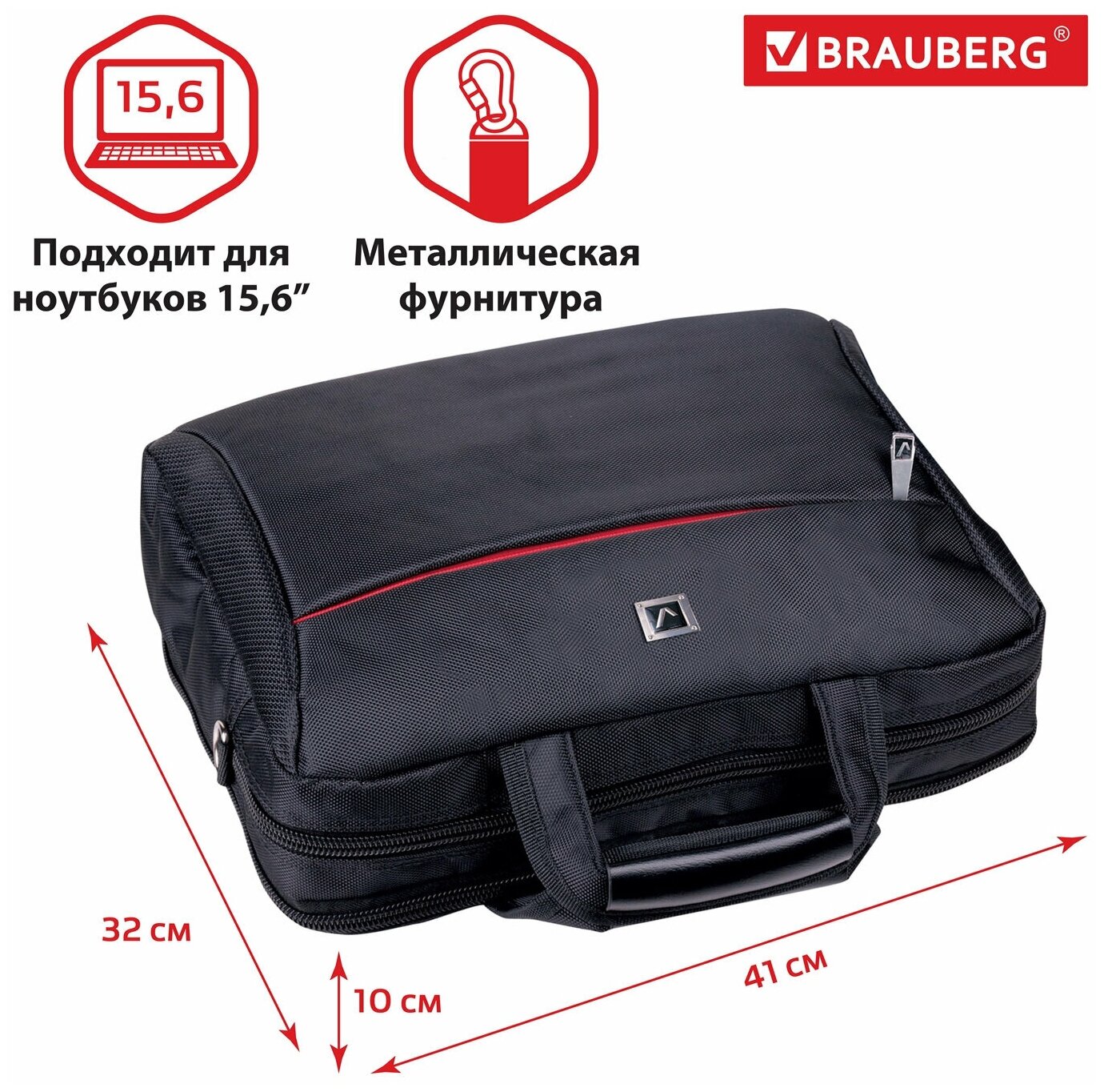 Сумка деловая BRAUBERG с отделением для ноутбука 15,6", "Control 2", 2 отделения, черная, 41х32х10 см, 240397, 240397