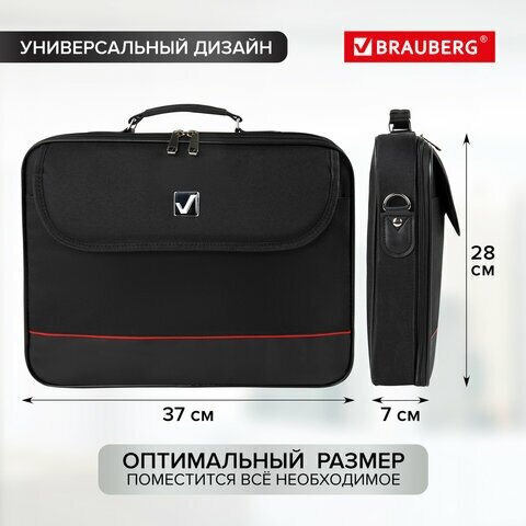 Сумка деловая для офиса и учебы BRAUBERG PF-1, отделение для планшета и ноутбука 13.3, 25?35?7 см, ткань, черная