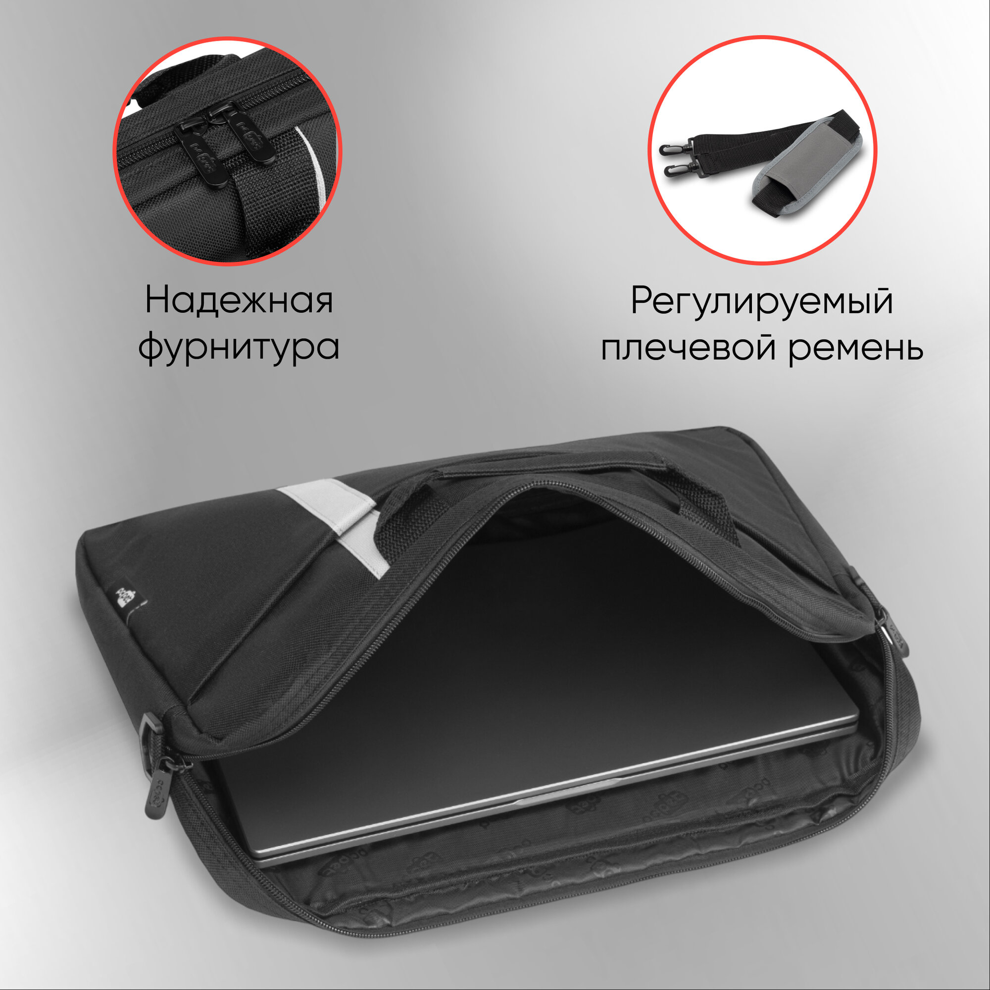Сумка для ноутбука 15,6" (31*39*4 см), плечевой ремень, цвет черный PC PET PCP-1001TQ - 1 шт.