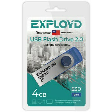 Купить Exployd Флешка Exployd 530, 4 Гб, USB2.0, чт до 15 Мб/с, зап до 8 Мб/с, синяя