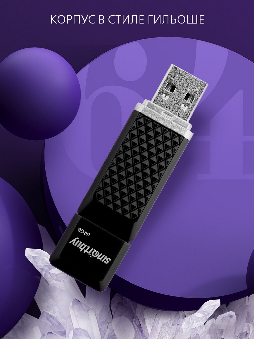 2 шт. Память Smart Buy "Quartz" 64GB, USB 2.0 Flash Drive, фиолетовый