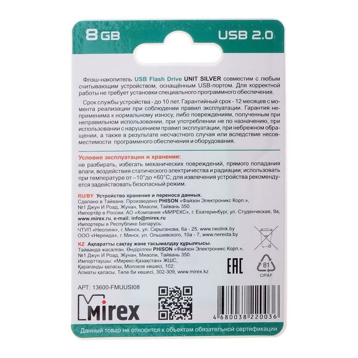Ниже Вы можете прочитать отзывы на USB флэш-накопитель 8 ГБ Mirex UNIT SILVER 8GB (ecopack), ознакомится с подробными характеристиками, посмотреть интересные обзоры и фотографии на USB флэш-накопитель 8 ГБ Mirex UNIT SILVER 8GB (ecopack).
