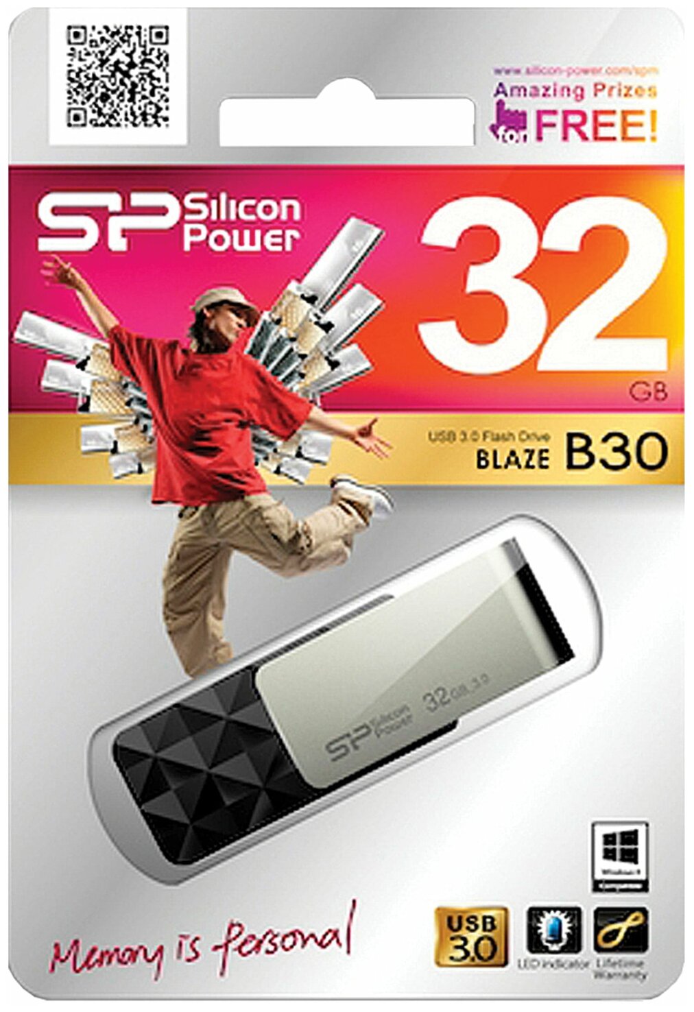 Флешка Silicon Power 32Gb Blaze B30 SP032GBUF3B30V1K USB3.0 черный/серый