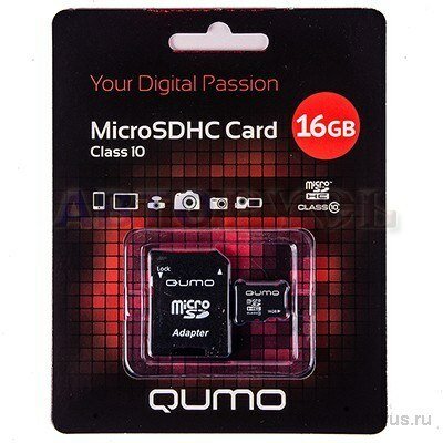 Карта флэш-памяти MicroSD 16 Гб Qumo +SD адаптер (class 10)