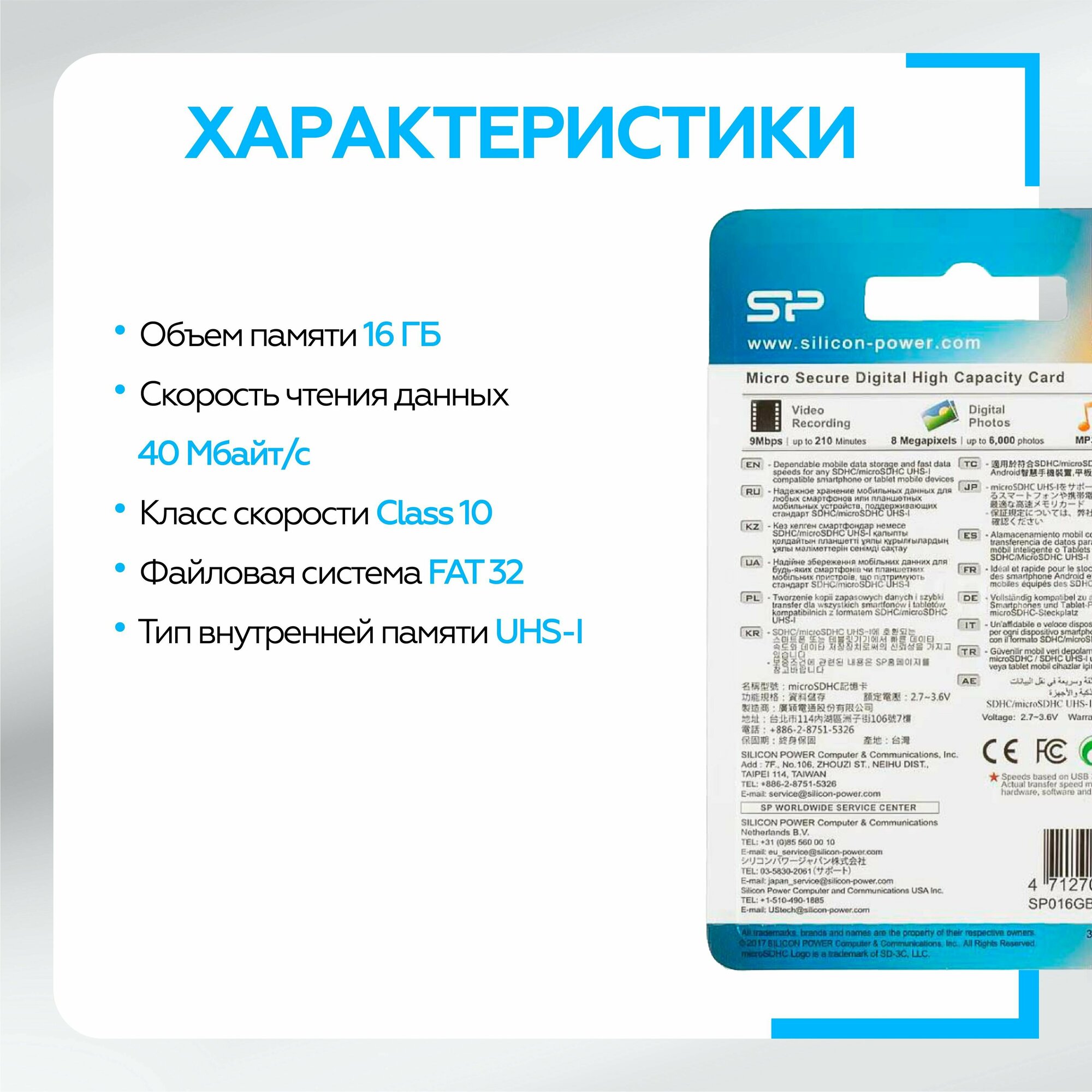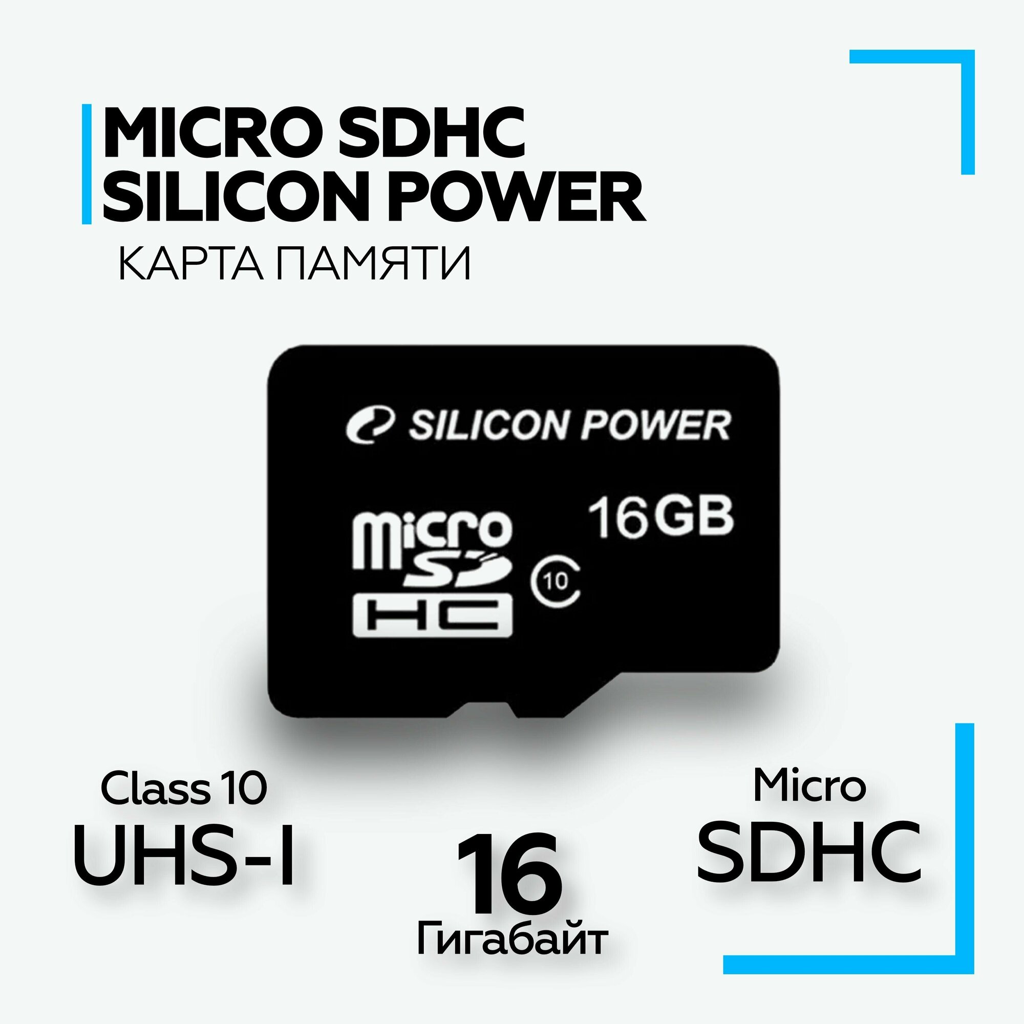 Карта памяти microSDHC Silicon Power 16 ГБ, Class 10, SP016GBSTH010V10, 1 шт.