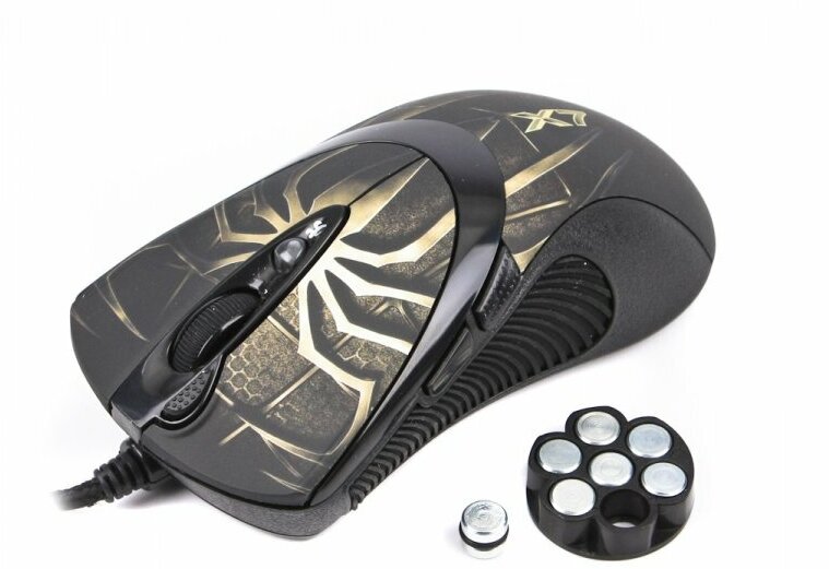 Мышь A4Tech xl747h "корич. паук", USB,лазер,4кн+колесо,600-3600dpi,память-64кб,1000гц, доп. грузики