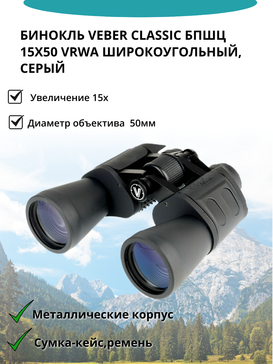 Купить Бинокль Veber Classic БПШЦ 15x50 VRWA широкоугольный, серый с увеличением 15х, мощный профессиональный, для охоты, рыбалки, туристический, универсальный, тактический