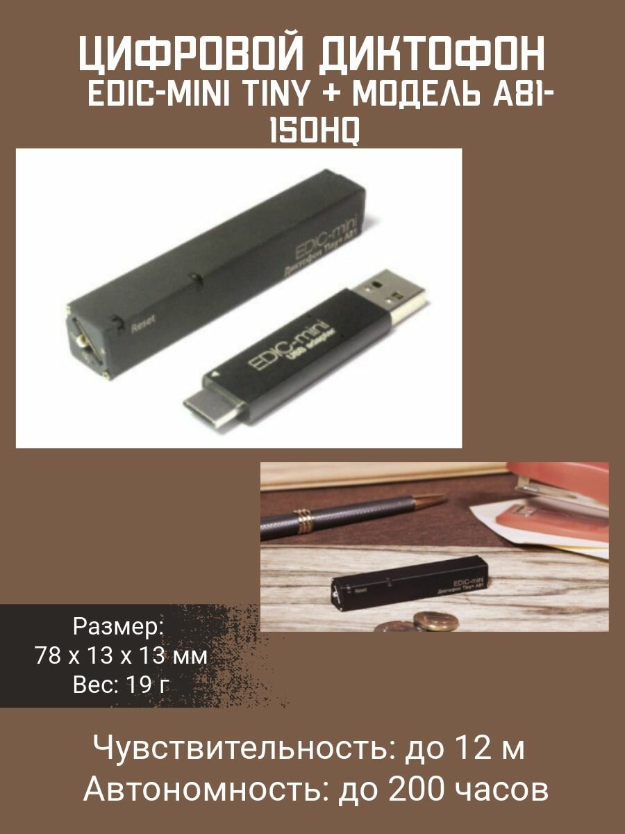Диктофон Edic-mini Tiny + A81-150h