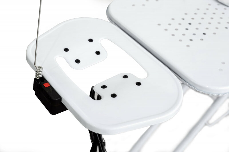 | Подробная комплектация | моноблочная стальная столешница, чехол с подкладкой (100% хлопок), подставка под утюг с антипригарными силиконовыми вставками, полка для белья. |