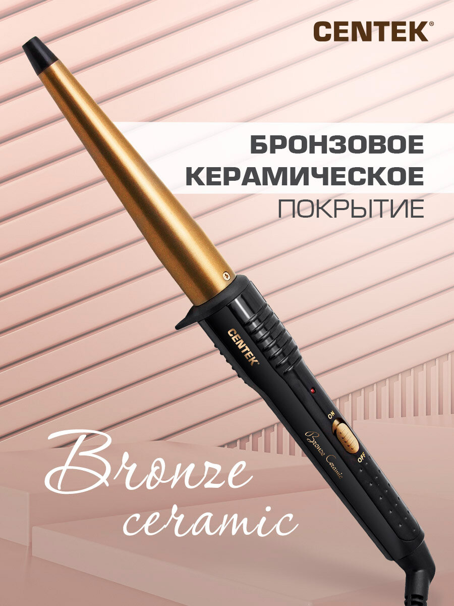 Конические щипцы для завивки CENTEK CT-2077 Bronze/ 60Вт/ керамическое покрытие/ 130 мм/ 200C