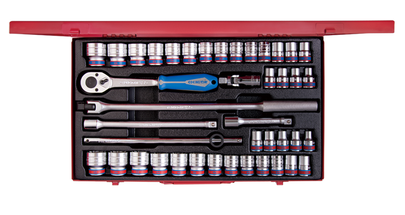 4042CR02 KING TONY Набор торцевых головок с принадлежностями 1/2", двенадцатигранные, 8-32 мм, 42 предмета